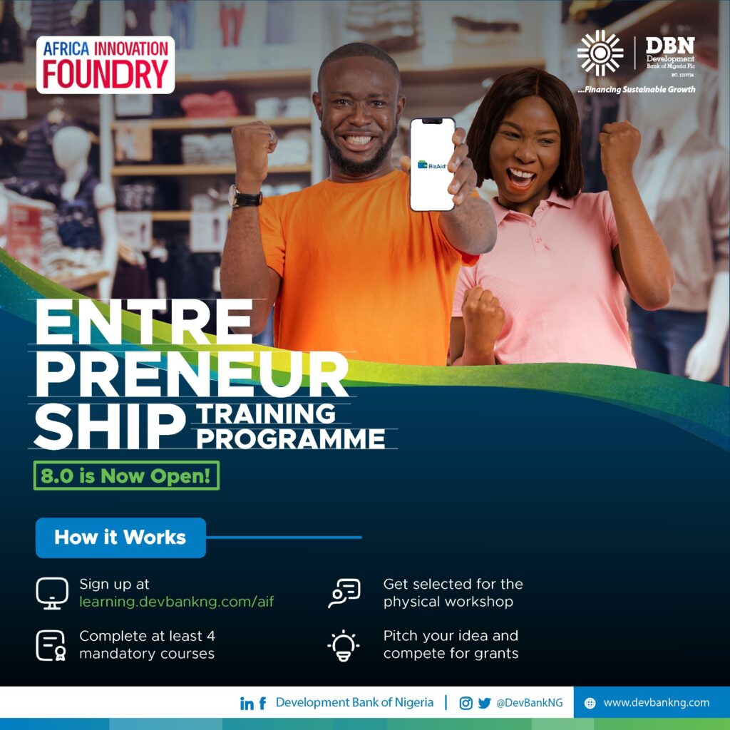 Africa Innovation Foundry (AIF) has entered a strategic partnership with the Development Bank of Nigeria (DBN) to support Micro, Small, and Medium Enterprises (MSMEs) across Nigeria through a blended programme focused on skills development, funding access, and business growth.